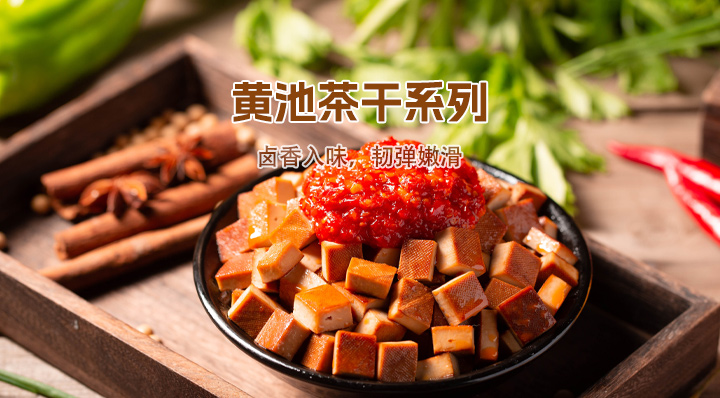 馬鞍山市黃池恒香食品有限公司是豆制品專業(yè)生產(chǎn)廠家,茶干的制作始終保持著傳統(tǒng)工藝,傳統(tǒng)配方,是安徽省既馬鞍山市著名的地方特產(chǎn)。 公司不僅在產(chǎn)品質量,還是在生產(chǎn)規(guī)模上都有很大的提高,現(xiàn)已成為全國較大較有影響的專業(yè)廠商。公司嚴格按照標準化、科學化管理,已通過ISO9001質量體系認證。并先后獲得“高新技術企業(yè)”、“農業(yè)產(chǎn)業(yè)化省級重點龍頭企業(yè)”、“新增規(guī)模企業(yè)”、“質量協(xié)會會員單位”、“安徽省市場放心食品示范單位”、“安徽省科技型中小企業(yè)”等榮譽稱號。  恒香茶干采用優(yōu)質大豆,佐以祖?zhèn)髋浞骄贫桑阆悴韪晒踩箢惗膫€品種,分為普通茶干類(包括5個品種)、夾心中檔類(包括14個品種)、禮盒高檔類(包括5個品種)。產(chǎn)品色澤醬紅,光潔鮮亮,質地硬實細膩,具有韌性,對折不斷,撕開有絲紋,進口香醇,品味俱佳,含有豐富的微量元素,根據(jù)中國預防醫(yī)學科學院營養(yǎng)和衛(wèi)生研究所研究表明日常飲食中豆腐干的鈣含量達到1739-1019mg/100g,為日常飲食中的最高。公司年產(chǎn)茶干2000噸,產(chǎn)值2000萬元。